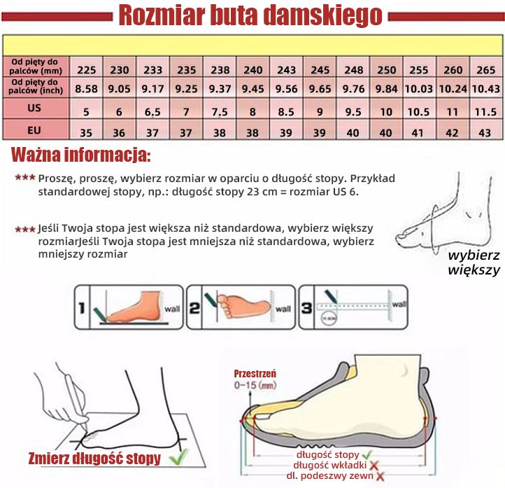 Nasze buty zapewniają doskonałe wsparcie dzięki antypoślizgowej podeszwie, która amortyzuje wstrząsy podczas chodzenia, dzięki czemu czujesz się lżej na stopach.